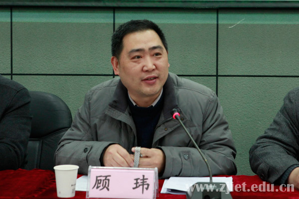高教处处长顾玮在讲话中也肯定了我院教学工作取得的成绩,并结合十二五期间浙江省高职教育发展最新精神和会议主题,从专业建设、实习实训基地、教学改革和教学团队等方面提出了建议。
