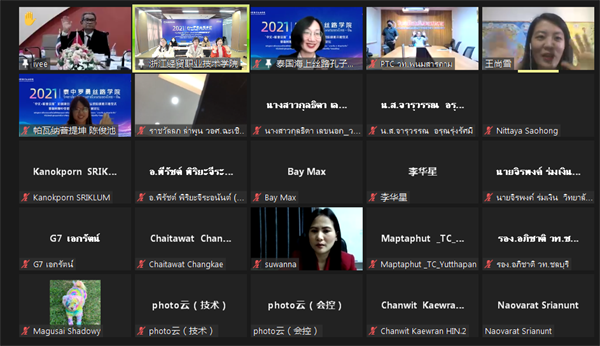 北京时间2021年12月24日上午,由我校联合泰国东部职教集团、天津师范大学海外孔子学院、泰国海上丝路孔子学院、泰国帕瓦纳·菩提坤职业学院共同举办的泰中罗勇丝路学院“中文+职业技能”培训项目—数字化技术与运营培训班开班仪式暨新时期中泰数字化人才培养发展论坛,以视频会议的形式成功举行。学校校长陈德泉出席会议并致辞。会议由学校党委委员、副校长蒋丽君主持。
