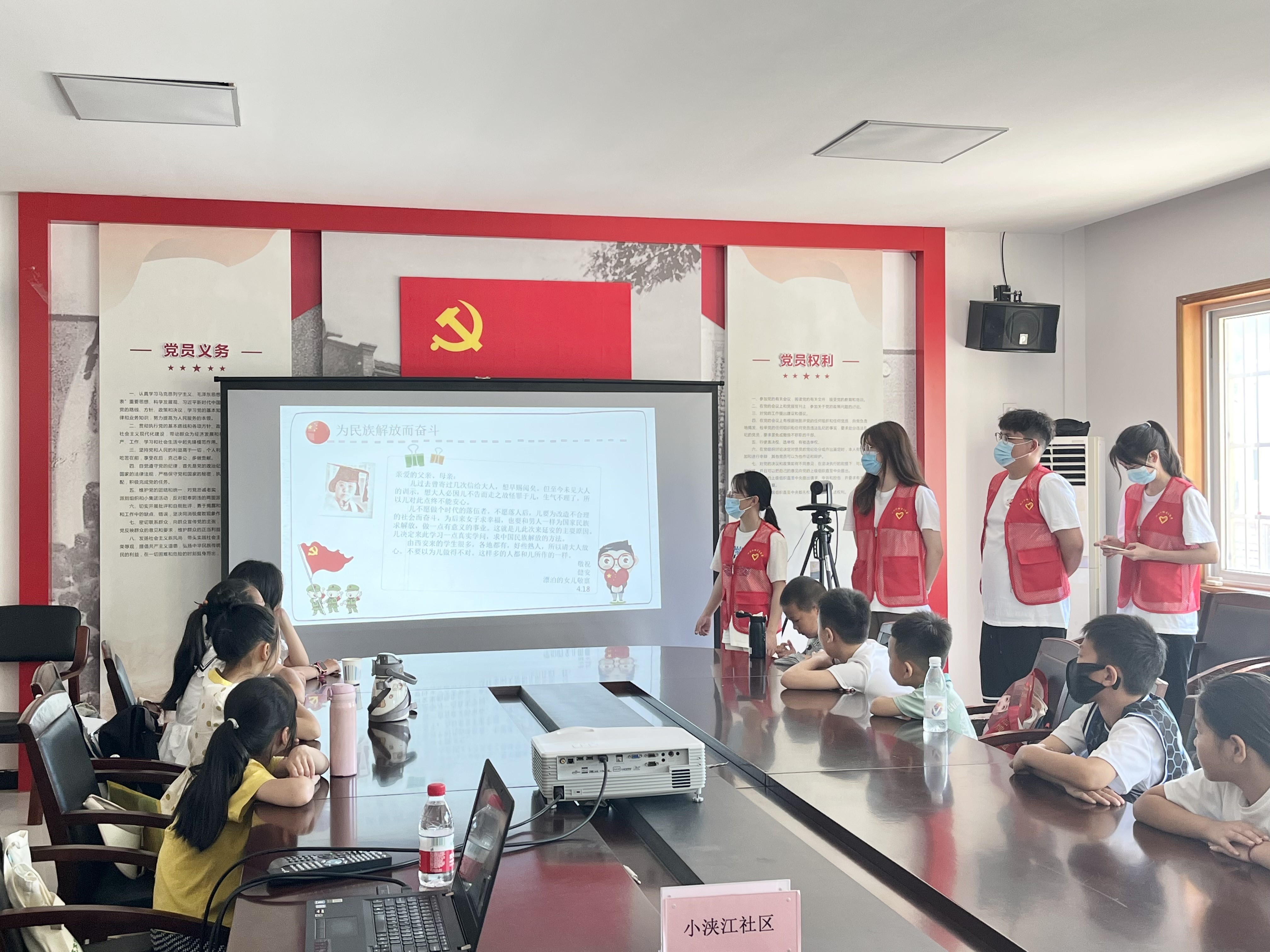 少年儿童是祖国的未来,红色教育要贯穿于少年儿童成长的每一步、每一个环节。实践小分队的队员们在思政课专业老师的指导下,将课堂上学到的思政知识与实地见学的所学所悟结合起来,认真细致地查阅资料、备课,随后来到宁波市北仑区小港街道小浃江社区服务中心,化身“小老师”走进社区假日学校,通过红色家书朗读、红色情景剧及红色歌曲演唱等多种形式,为当地的少年儿童带来了丰富多彩的红色故事。