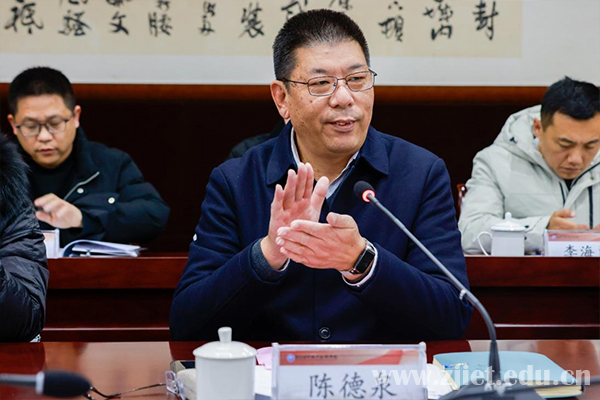现场汇报会在学校崇德楼第三会议室举行。校长陈德泉,副校长蒋丽君,学工部(团委)、人事处、教务处、计划财务处、公共教育学院、保卫处、资产后勤处、二级学院等相关部门负责人参加了本次会议。