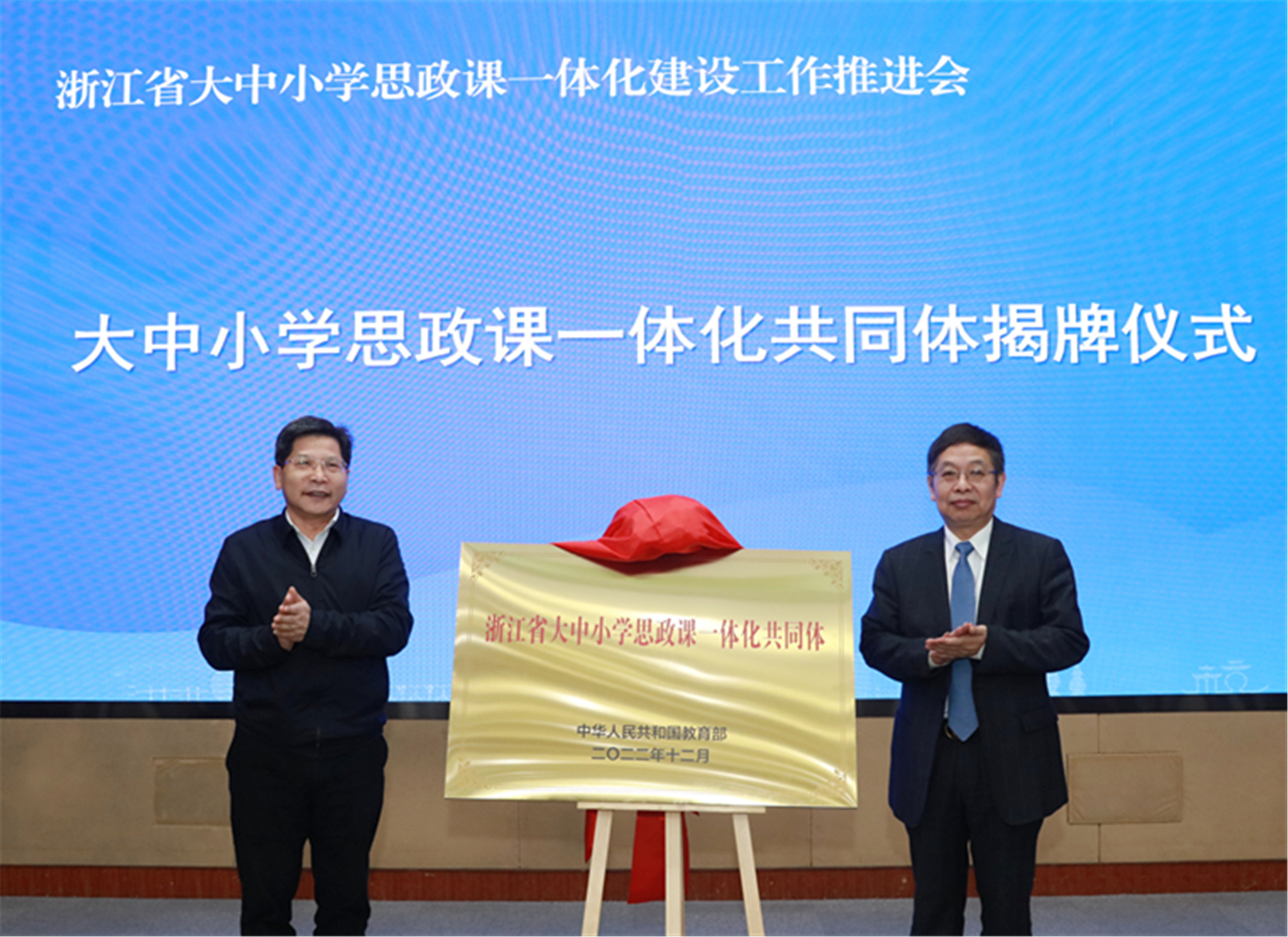 陈春雷指出,推进大中小学思政课一体化建设对于落实立德树人根本任务,教育引导广大学生坚定“四个自信”、努力成为堪当民族复兴重任的时代新人,具有不可替代的作用,全省各大中小学要切实把大中小学思政课一体化建设摆在重要位置,以成立省大中小学思政课一体化建设联盟为契机,加快推进思政课一体化建设,扎实推动新时代思政工作高质量发展。他要求,要突出工作重点,结合不同学段学生心理特点和教育规律办好思政课,建好专职教师队伍,打造好新平台。要加强工作协同,强化机制建设、课题研究和总结交流,推动校际协作、教师协作、校地协作,统筹推进大中小学思政课一体化建设。要擦亮工作品牌,打造特色教材、特色课程和特色实践活动,形成具有浙江辨识度的大中小学思政课一体化建设品牌。