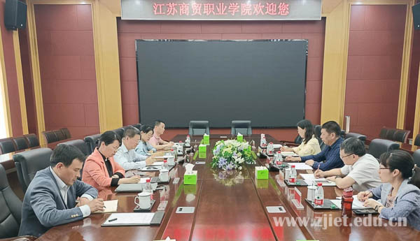 陈德泉对江苏商贸职业学院的热情周到接待表示感谢,详细介绍了学校近年来的发展思路和取得的成效。他指出,专业群变革重塑是高职院校适应职业教育新形势新要求,抢抓发展机遇期,实现新一轮高质量发展的关键环节。两所学校都是供销行业举办的财经商贸类高职院校,有着相似的专业建设逻辑和人才培养理念。希望两所学校能够进一步加深交流合作,在专业优化、人才培养、社会服务等方面互通有无、相互借鉴,共同谋划学校职业教育发展新篇章。