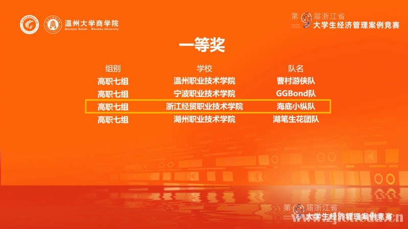 本次竞赛自六月份启动以来,吸引了来自全省72所高校502支队伍参赛,其中高职高专93支队伍。经过双向匿名评审,高职高专组共有21支参赛队进入决赛答辩环节,最终包含我校在内的8支队伍获得一等奖,这充分体现了我校师生经管案例分析能力的高水准。